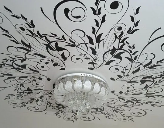 Узоры могут быть выполнены как в виде отдельных фрагментов, так и на всю ширину полотна. Фото узоров (готовых решений для создания вашего натяжного потолка с фотопечатью) можно просмотреть в нашей галерее.